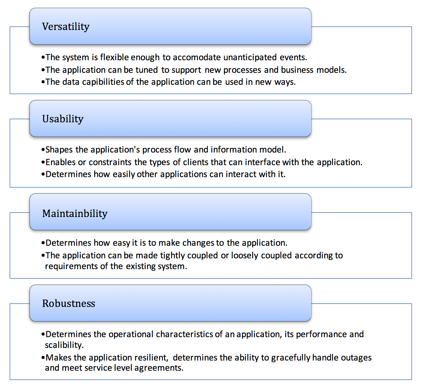 An application’s architecture describes the behavior of applications used in a business, focused on how they interact with each other and with users. It refers to the structure and organization of an application system. It directly affects an application’s ability to accommodate digital business requirements. Every application has a set of characteristics that are affected by the underlying architecture.