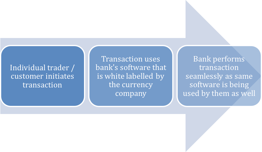 For example, when banks enter into a partnership with independent currency companies. These currency companies carry out their transactions of currency exchange through the banks and make use of the technology and resources of the banks to provide a better service to their customers